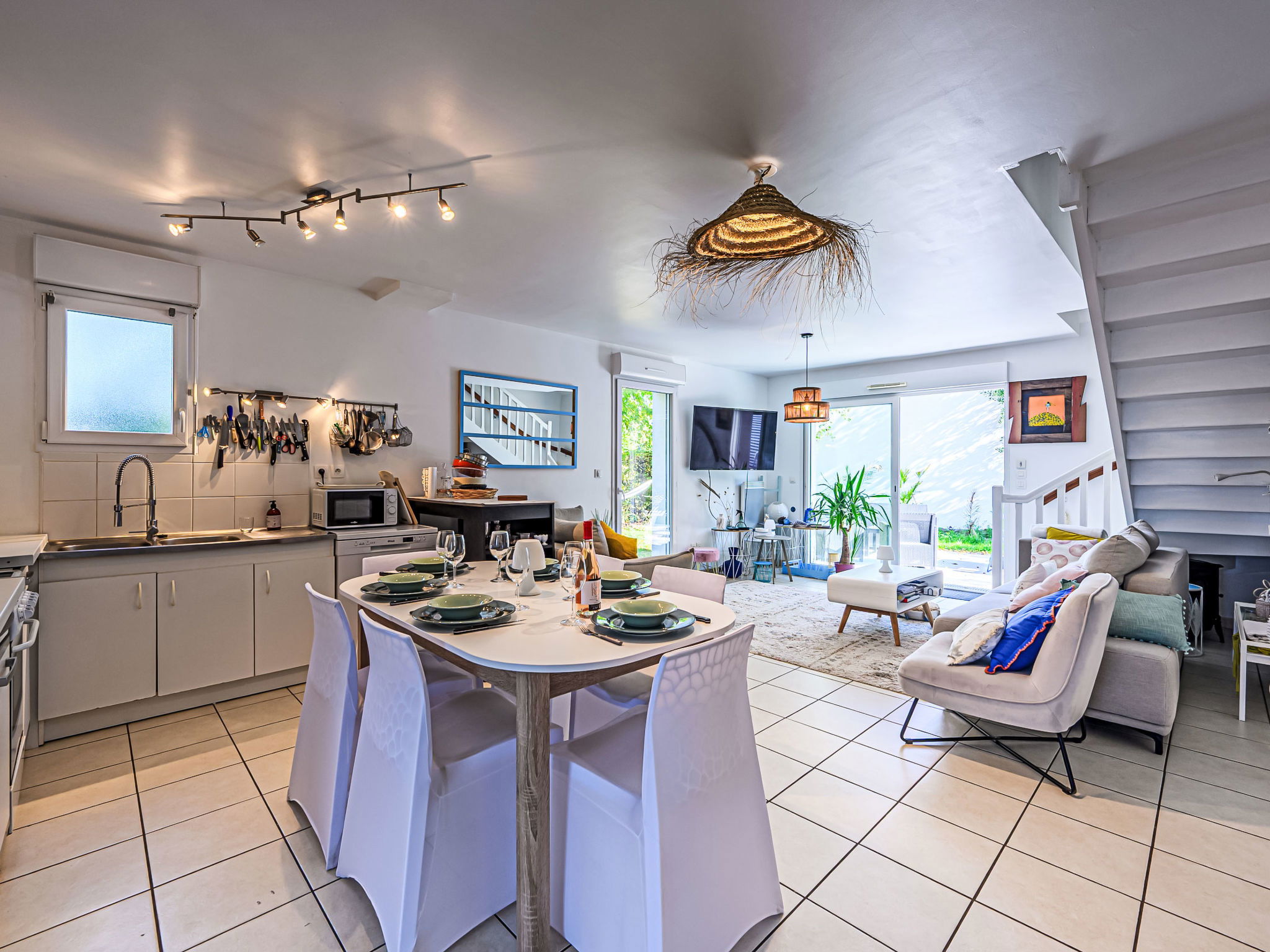 "Maison de l'Amaryllis", 5-room house 90 m2. Comfortable furnishings: living/dining room with TV (flat screen). Exit to the terrace. Open kitchen (4 hot plates, oven, dishwasher, toaster, kettle, microwave, freezer, electric coffee machine, Capsules for coffee machine (Nespresso) extra). Sep. WC. Upper floor: 1 room with 1 bed (90 cm, length 190 cm), TV (flat screen). 1 room with 2 beds (80 cm, length 190 cm), TV (flat screen). 1 room with 1 french bed (1 x 140 cm, length 190 cm), TV (flat screen). 1 room with 2 beds (80 cm, length 190 cm), hand-basin. Shower/WC. Terrace, garden 320 m2. Terrace furniture. Facilities: washing machine. Internet (WiFi, free). Parking (1 car). Please note: non-smokers only. Smoke alarm. Offer by a private individual according to Art. 155, IV of CGI.